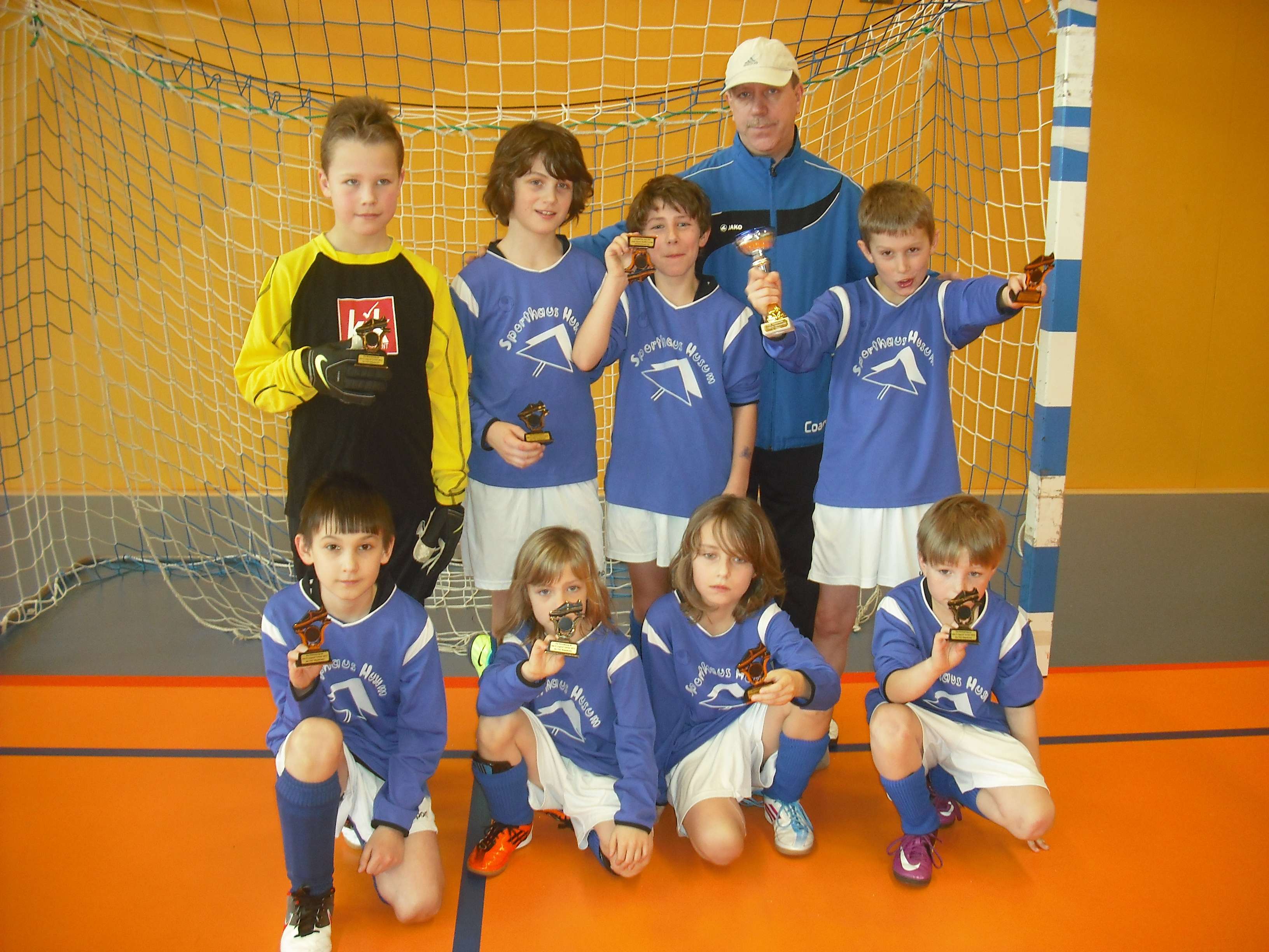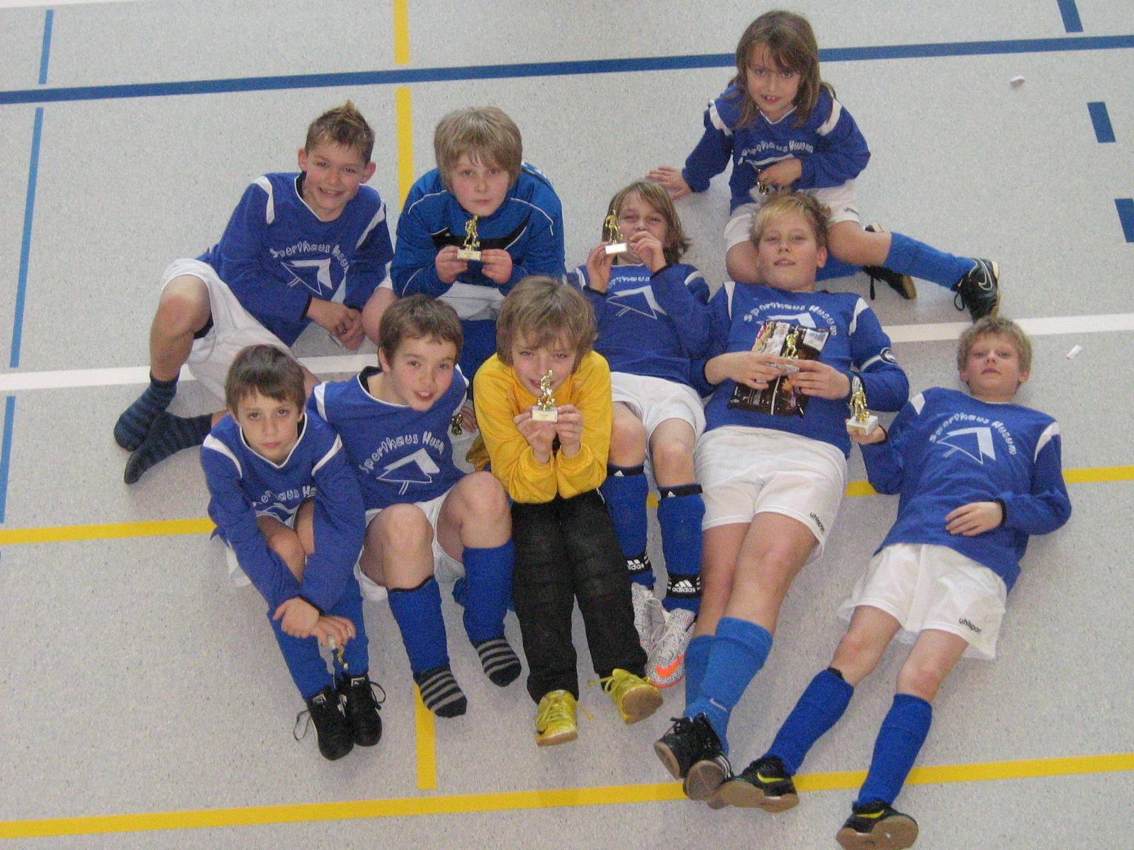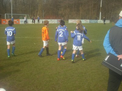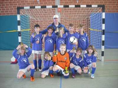 E-Jugend gewinnt am 16.01.2011 Hallenturnier der SG Westerdöfft in Wesselburen: Am 16.01.2011 war unsere E-Jugend mit einem Mixed-Team aus der EI und der EII bei der SG Westerdöfft in Wesselburen zu Gast, da wir uns für die Hallenkreismeisterschaft einspielen wollten. Dieses ist uns gelungen. Im Team standen: Jonas, Schnecke, Gian-Luca, Yannick, Arian, Mats, Julian, Finn-Lasse, Noah-Marvin, Janne und Yurian. Obwohl alle drei Trainer in einvernehmlicher Abstimmung das Team immer wieder veränderten und alle Spieler auf verschiedenen Positionen zum Einsatz brachten, kamen wir zu einem verdienten und souveränen Turniersieg mit 18 Punkten und 21 : 5 Toren. Im ersten Spiel fegten wir TSV Nordhaststedt mit 7 : 1 von der Platte. Mats erzielte zwei schöne Tore ganz clever aus ganz spitzem Winkel. Im zweiten Spiel siegten wir durch einen Hattrick sowie ein weiteres Tor vom sehr starken Julian mit 4 : 0 gegen TuRa Meldorf. Gegen die beiden Mannschaften des Gastgebers gewannen wir mit 1 : 0 und 4 : 1. Über das Spiel gegen Kickers Eider decken wir den Mantel des Schweigens! Es folgte ein 1 : 0 gegen Heider SV sowie ein 3 : 1 gegen SG Hademarschen/Albersdorf. Hier erzielten Yurian und Noah-Marvin jeweils nach schönem Spiel über die Flügel mit jeweils einem Flankenwechsel die beiden Tore zum Sieg. Endstand: 1. IF Tönning – 18 Punkte; 21 : 5 Tore 2. SG Westerdöfft – 15 Punkte; 10 : 3 Tore 3. SG Westerdöfft – 15 Punkte; 12 : 9 Tore Da wir eine geschlossene Mannschaftsleistung zeigten, sollen einzelne Spieler nicht weiter angesprochen werden. Tore: 9 x Julian; 6 x Mats; 2 x Schnecke, 2 x Yurian; 2 x Noah-Marvin Tönning, 16.01.2011 - Andree Peters (zum vergrößern auf das Bild klicken!)
