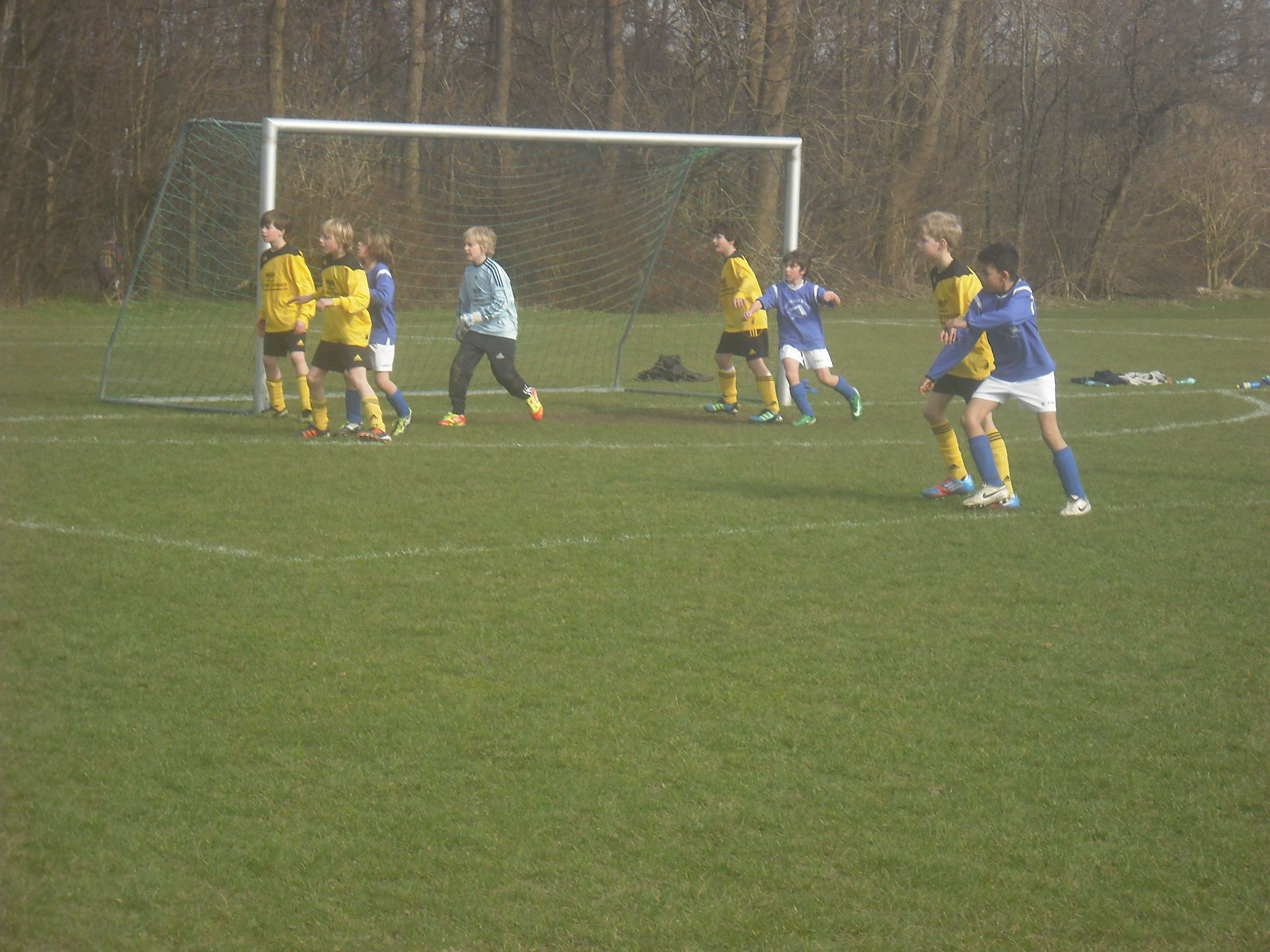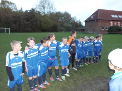 E-Jugend II holt am 03.04.2011 bei der JSG NF Mitte in Bredstedt einen Auswärtspunkt Dass Staffelleiter und Kreisjugendobmann bei der Zusammenstellung der neuen Staffeln der Kreisklasse A einen guten Job gemacht haben, belegt der Umstand, dass die Spiele bisher sehr knapp ausgingen und die Mannschaften etwa gleich stark einzustufen sein dürften. Das ist erfreulich und macht es für alle Mannschaften spannend. In Bredstedt hatte unsere E II etwas gut zu machen, denn wir hatten dort zuletzt 5 : 2 verloren. Nach einem ausgeglichenen Spiel mit wenig klaren Torchancen endete das Spiel 0 : 0, was letztlich für beide Teams in Ordnung ging, obwohl wir etwas mehr Spielanteile hatten. Unsere E II kämpfte, konnte aber spielerisch und taktisch nicht an die Leistungen gegen Langhorn anknüpfen. In beiden Teams standen starke Torhüter, die jeweils die besten Spieler waren. Mit dem Punktgewinn können und müssen wir zufrieden sein. Spielerisch müssen wir am kommenden Freitag gegen Drelsdorf ein besseres Spiel abliefern. 03.04.2011 - Andree Peters