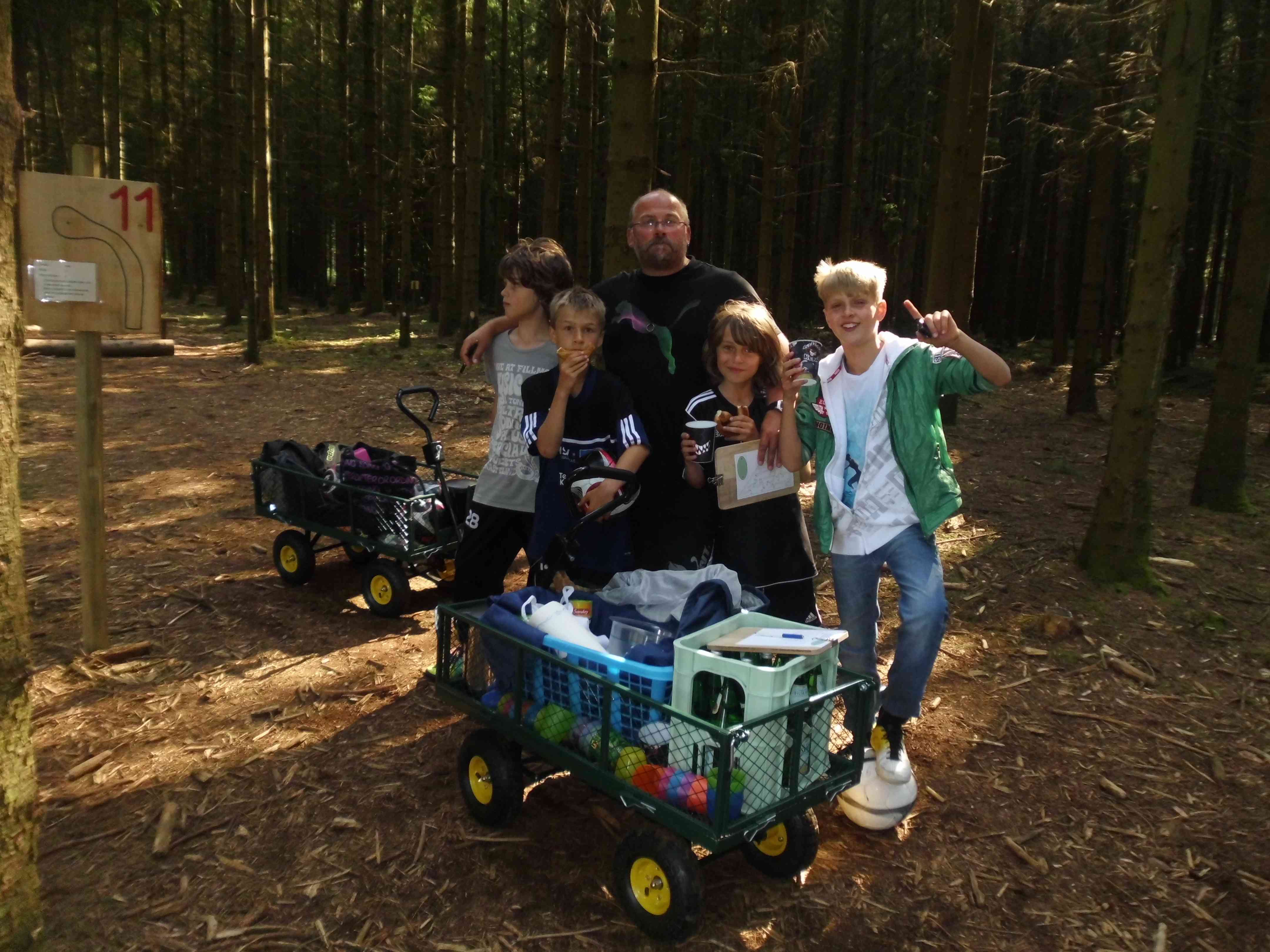 Zum Saison-Abschluss ging es zum Fußballgolf nach Sorgwohld/Owschlag Saisonabschluss der E-Jugend, das heißt es wurde wieder was unternommen. Diesmal war es ein Ausflug zum Fußballgolf nach Owschlag. Mit fast allen Spielern ging es bei gutem Wetter los. Angekommen in Owschlag, wurden wir mit Bollerwagen, Fußbällen, Klemmbrett und Spielregeln ausgestattet und los ging es. Im Grunde genommen funktioniert Fußballgolf wie traditionelles Golf, nur sind die Bälle und natürlich die Löcher ein wenig größer. Es wird mit einem Fußball geschossen, der in 60-80 cm große Löcher versenkt werden muss. Insgesamt 18 Bahnen in verschiedenen Schwierigkeitsstufen galt es zu bespielen. Allen Beteiligten machte es viel Spaß, bei gutem Wetter und idyllischer Ruhe im Wald, sich an dieser neuen Freizeitgestaltung zu versuchen. Nach ca. 3 Stunden Fußballgolf ging es dann wieder Richtung Tönning. Dort warteten die Eltern und Geschwister schon mit leckeren Sachen vom Grill und einem tollem Salatbuffet auf uns. In gemütlicher Runde wurde dort noch einmal ein Rückblick auf die abgelaufene Saison gehalten und alle waren sich schnell einig das diese Saison eine doch ziemlich erfolgreiche beider E-Jugend Teams war. In diesem Zusammenhang wurden noch einige Spieler geehrt: Katharina Speer (Beste Spielerin der Saison), Robert Nabokov (Trainingsfleißigster) und Lucas-Dorian Hansen (Bester Torschütze). Herzlichen Glückwunsch! Allen Beteiligten und Helfern ein großes Dankeschön für diesen gelungenen Saisonabschluss und Allen eine schöne Ferienzeit und viel Erfolg in der neuen Saison. 22.06.2012 - Torsten, Kim und Hansi
