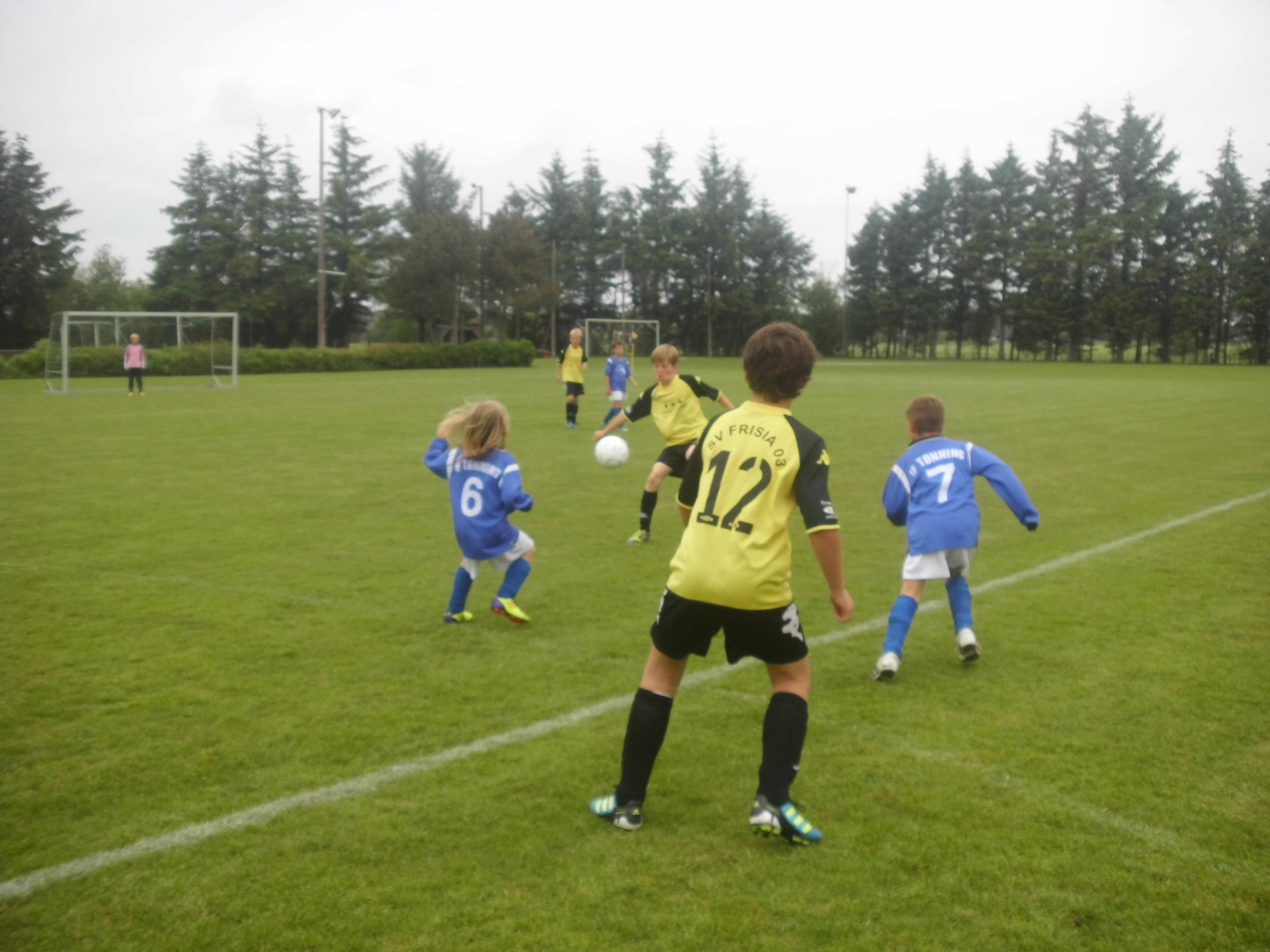 8 : 1 Heimsieg für die E II gegen die SG Friedrichstadt/Seeth II am 30.10.2010 Im vorletzten Heimspiel unserer E II kamen wir am 30.10.2010 zu einem ungefährdeten 8:1 Heimsieg (Halbzeit 4:0) gegen die SG Friedrichstadt-Seeth II. Die gesamte Mannschaft bot eine gute Leistung! Herausragend waren Jonas Lemster im Tor und Gian-Luca Otzen auf der linken Abwehrseite. Besonderheit des Spiels: Mats Peters erzielte in jeder Halbzeit jeweils einen Hattrick und verwandelte 2 Ecken in Folge direkt! Die Chancen auf den Staffelsieg stehen jetzt äußerst gut nach 6 Siegen in 7 Spielen mit 18 Punkten und 47 erzielten Toren (6,7 pro Spiel). Tönning, 30.10.2010 - Andree Peters