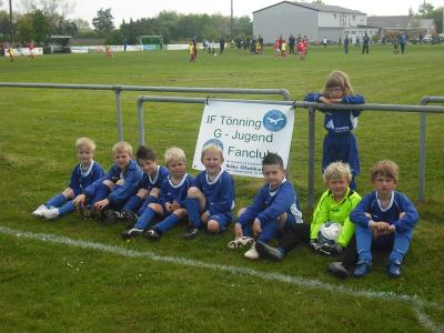 G-Jugend Staffelturnier Am 9.Mai 2009 waren wir mit der G1 und der G2 Gast beim Husumer SV zum 2.Staffelturnier in unserer Gruppe. Dort zeigten beide IF G-Jugend Teams -tollen Fussball- Kampf-Leidenschaft und gute Spielzüge ! Belohnt wurden die Tönninger bei insgesamt 27 geschossenen Toren mit dem 1. und 2. Platz bei diesem Staffelturnier. Torschützen für die IFer waren : Julius-Azad –Lukas –Niklas –Lars –Rinor Besonders herausheben möchten wir die Leistung unseres Keepers Lasse S. der ( personalbedingt ) bei der G1 und G2 im Tor stand . Nächstes Staffelturnier am 16.Mai 2009 in Stapelholm