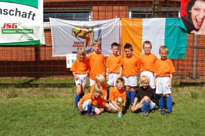 Pfingst- Turnier in Arlewatt Trotzdem waren am Ende alle Beteiligten zufrieden und konnten stolz auf ihre Leistungen sein. Besonders hervorheben möchte ich die Leistung von unserem Abwehrspieler Azad Makbul und unserem Torwart Fin Moritz Gerke die beide tollen Fussball an diesem Tag zeigten. Am Schluss konnte Azad sich noch über ein paar Torwarthandschuhe freuen die er für den 3. Platz beim Schiessen an der Schussgeschwindigkeits-Messanlage (51 Km/h) erhielt. Weiter geht es für uns am 6. Juni, dann findet unser Heim-Staffelturnier statt. Hansi ( Trainer ) (zum vergrößern auf's Bild klicken!) (zum vergrößern auf's Bild klicken!) |
