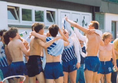 Bilder vom Aufstieg in die Bezirksklasse Süd im Jahr 1992, nach dem letzten Punktspiel bei Frisia Husum II, das mit 2:1 gewonnen wurde.