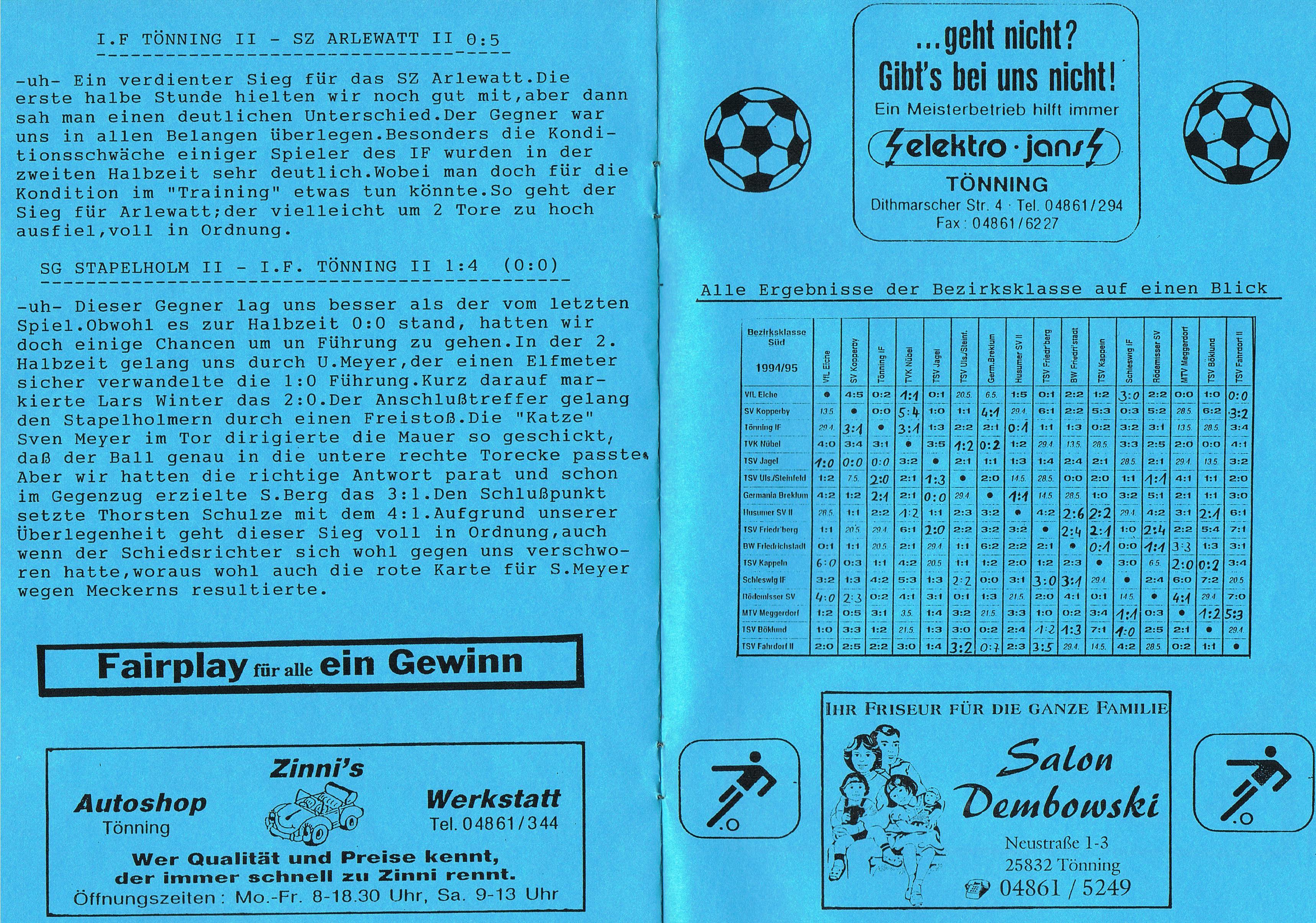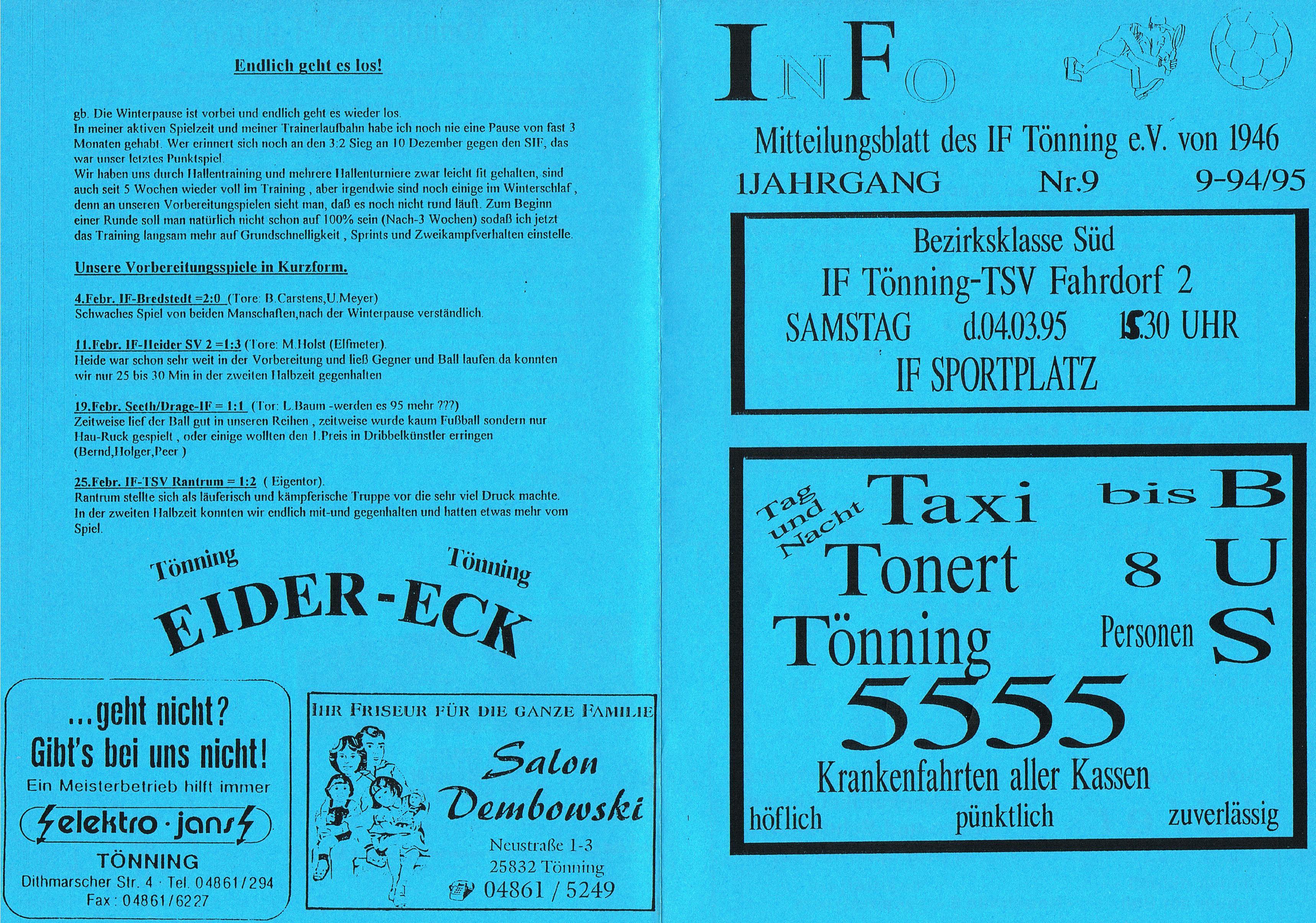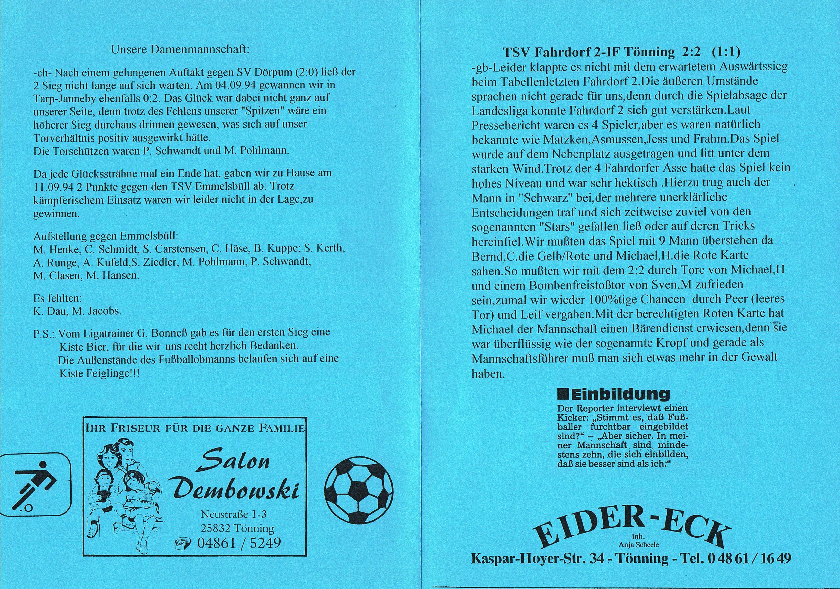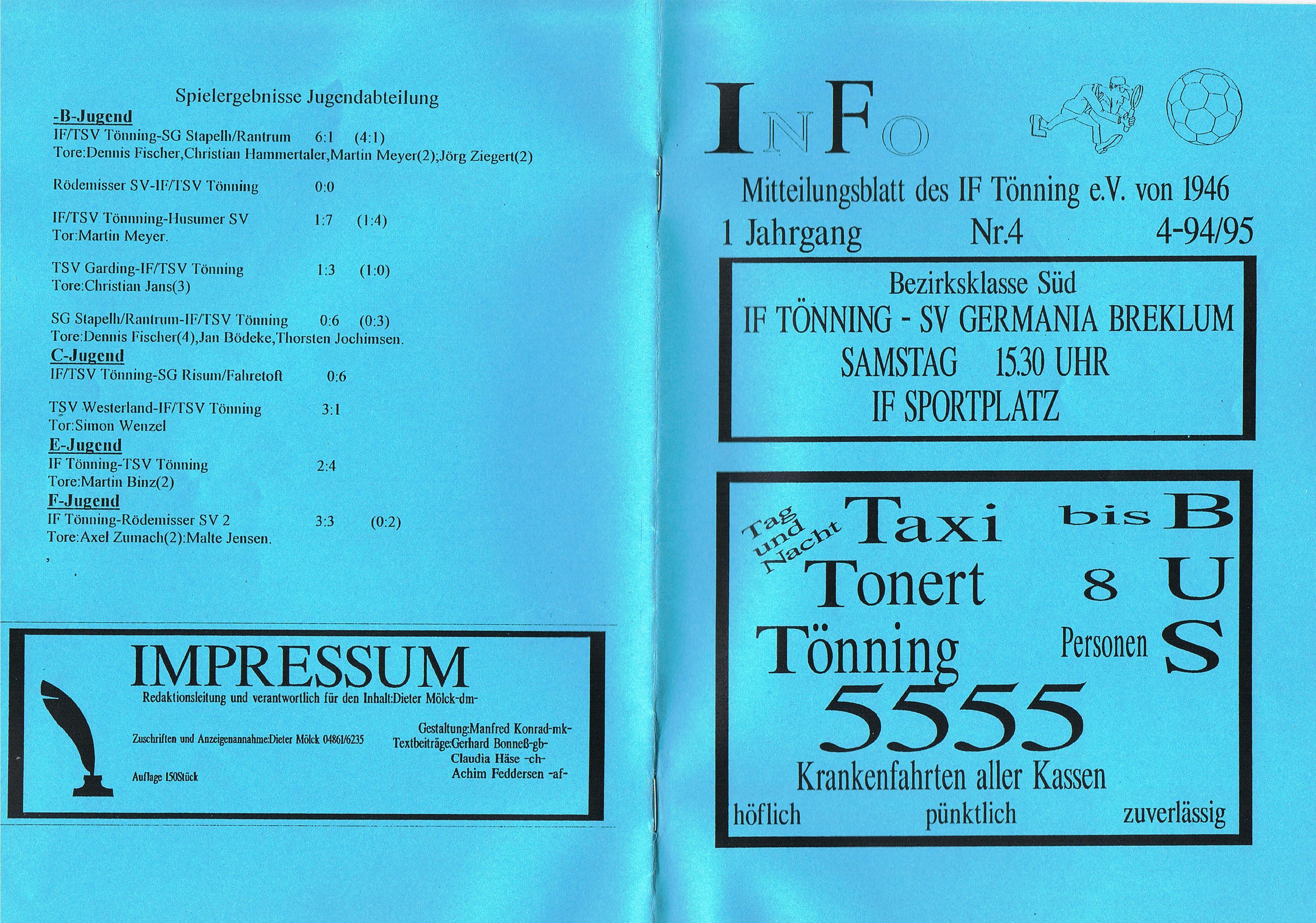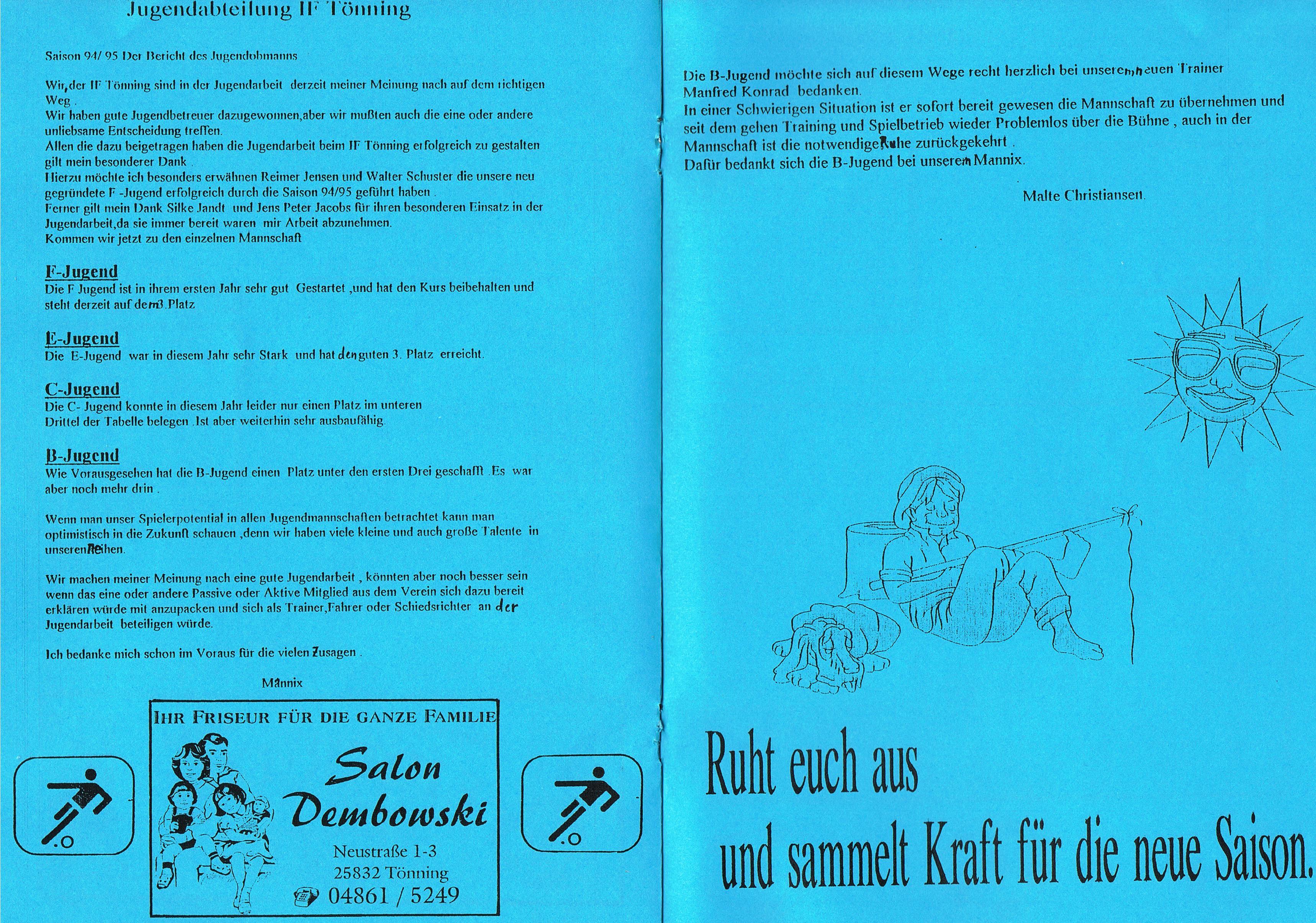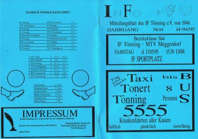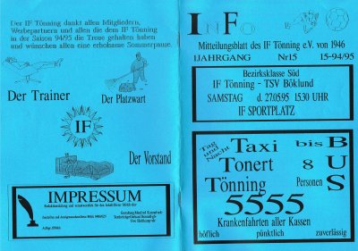 Presseberichte und Auszüge aus dem Vereinsinternen Mitteilungsheft InFo Saison 1994 - 1995 (zum vergrößern auf das Bild klicken)