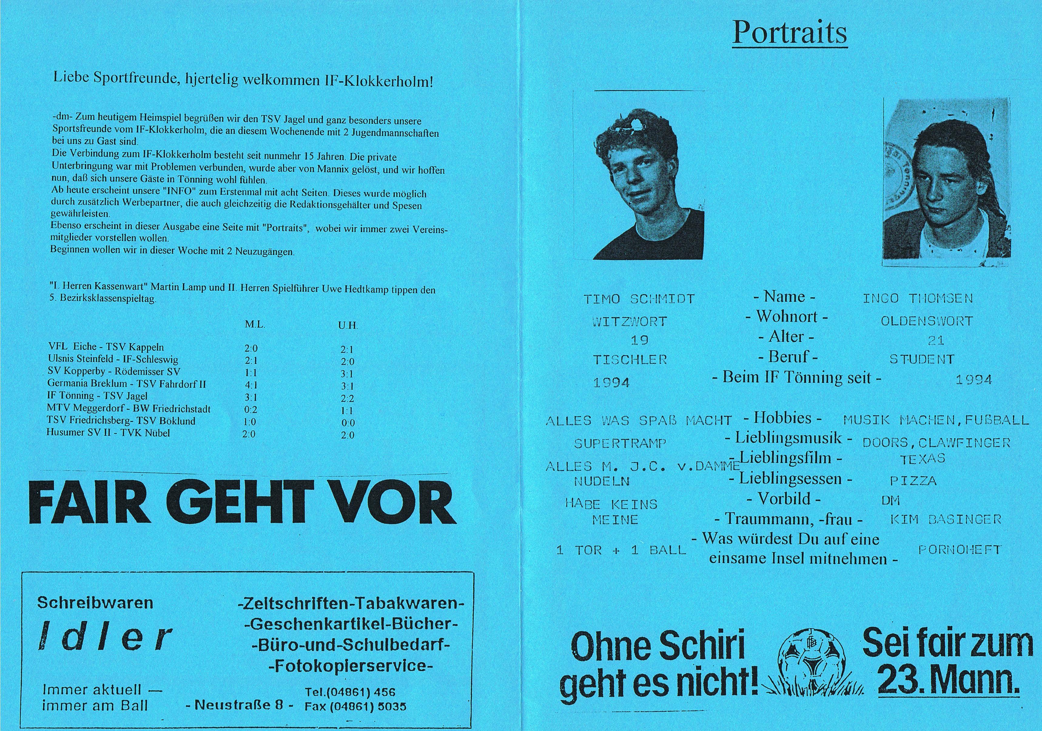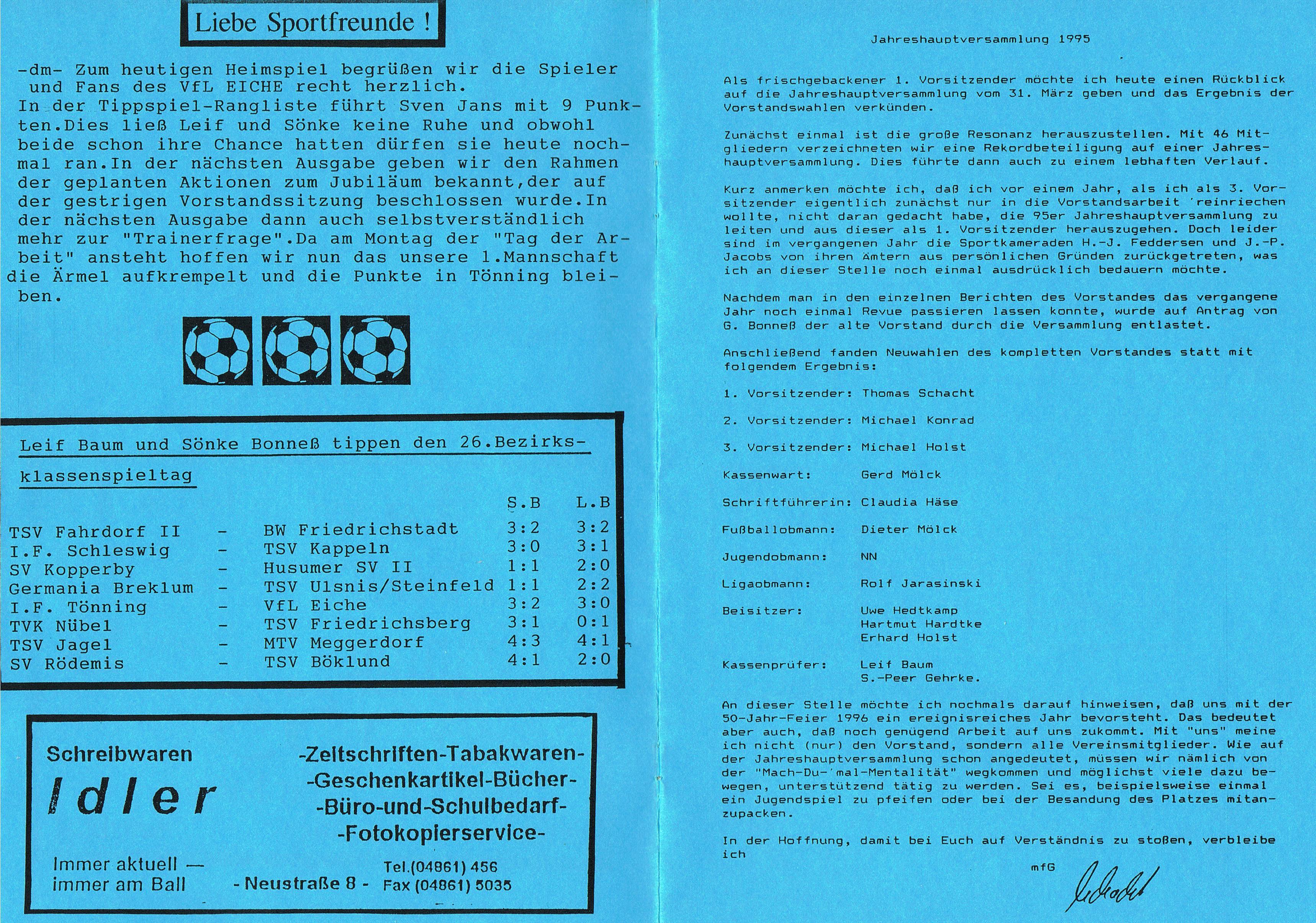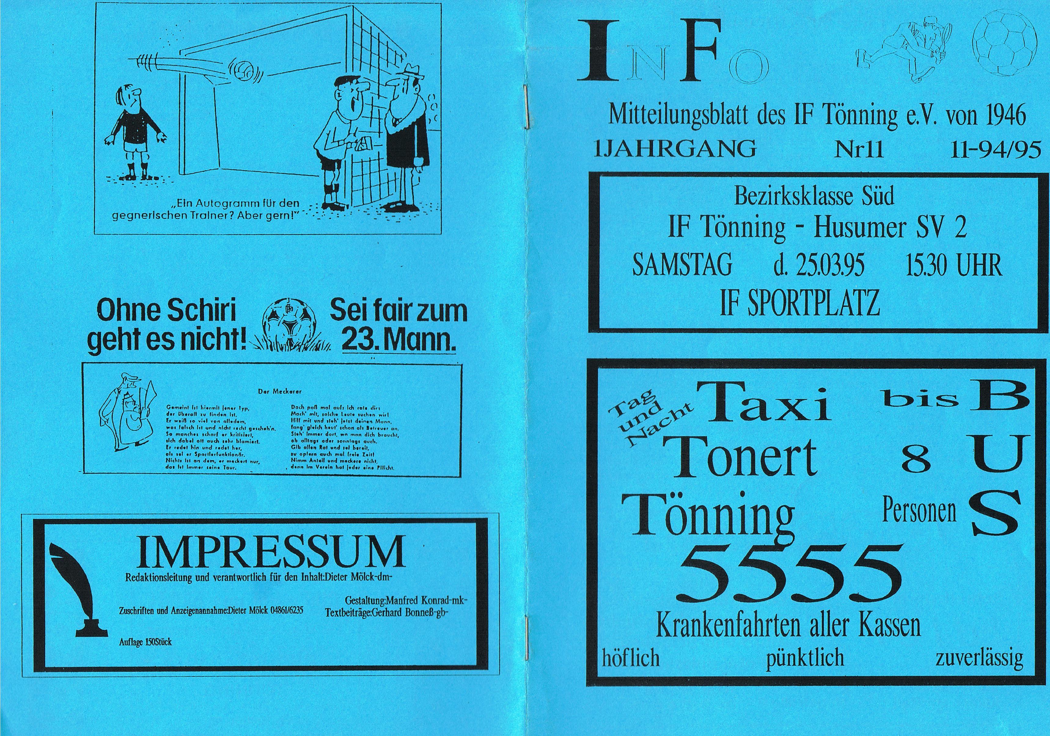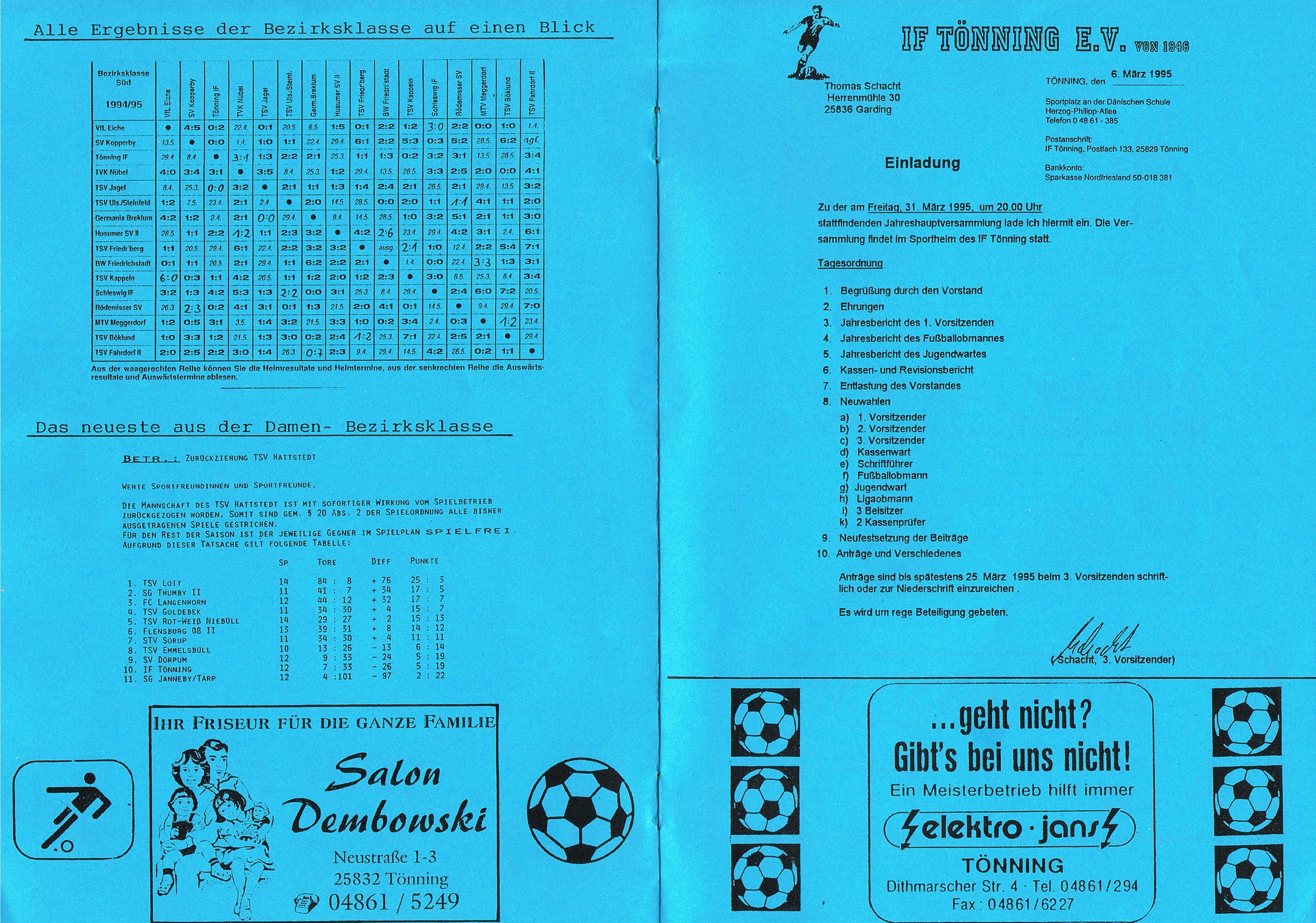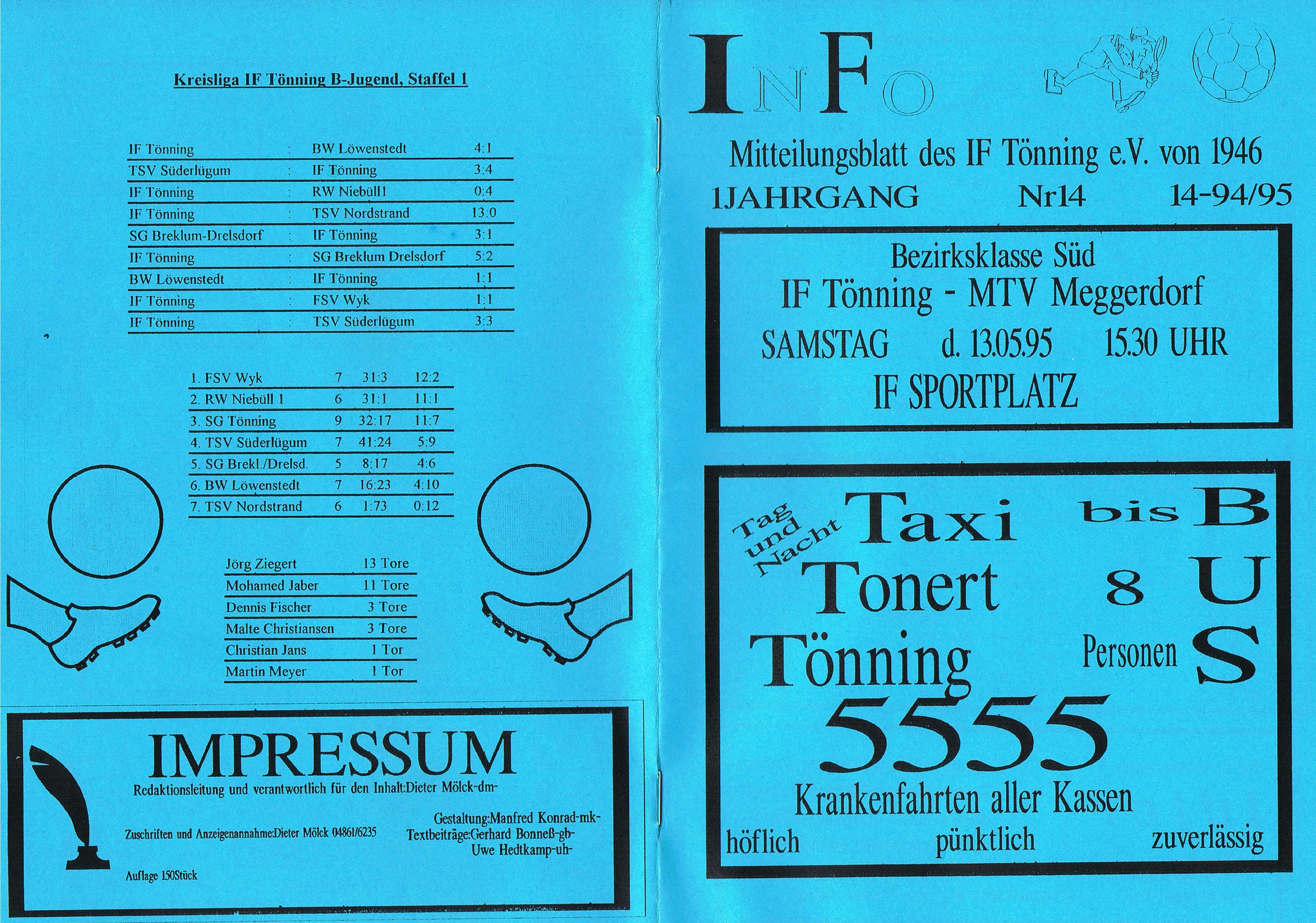 Presseberichte und Auszüge aus dem Vereinsinternen Mitteilungsheft InFo Saison 1994 - 1995 (zum vergrößern auf das Bild klicken)