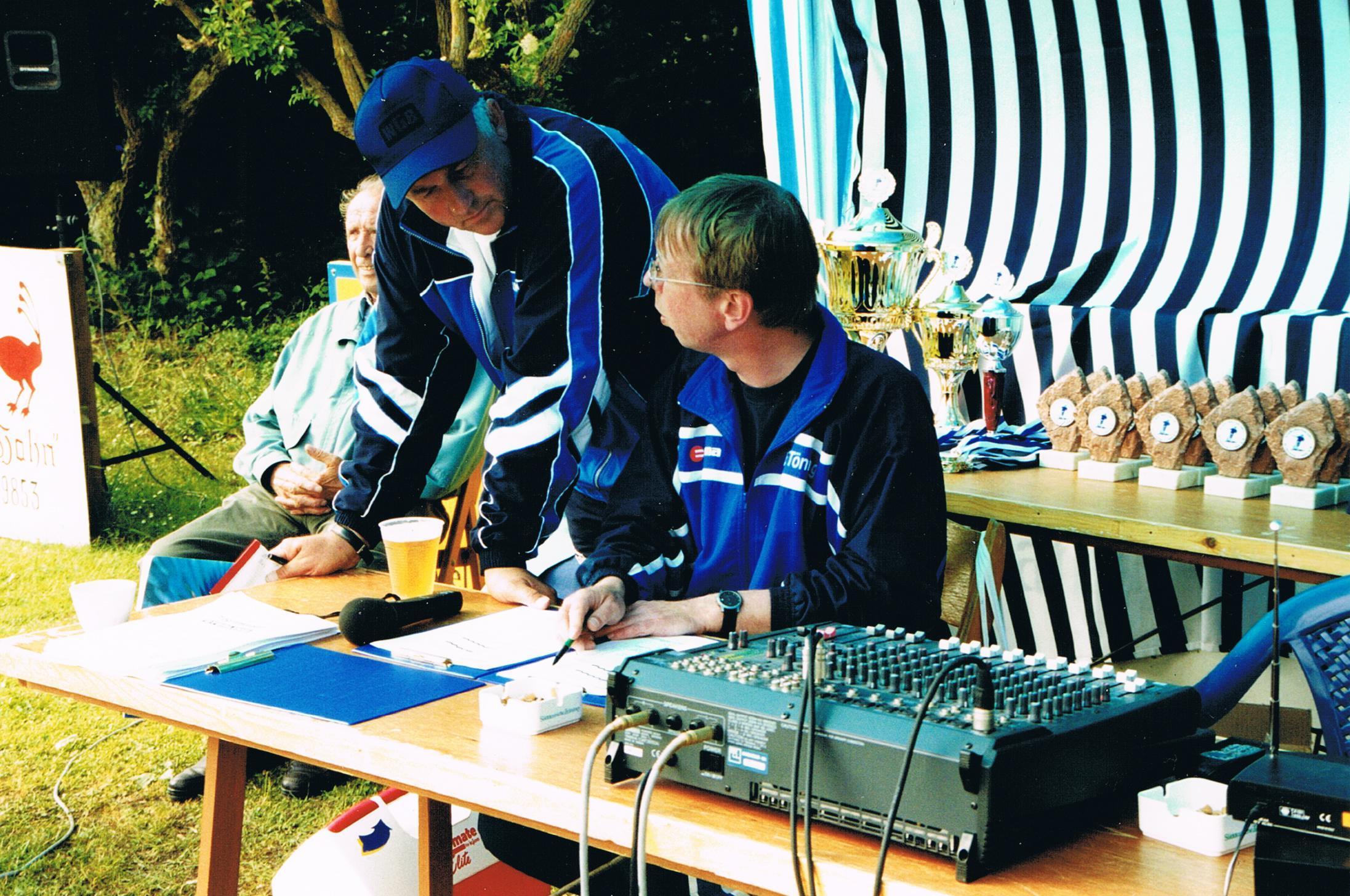 Einige Vorstandsmitglieder und langjährige Vereinsmitglieder: (zum vergrößern auf das Bild klicken) Dieter Mölck - 1. Vorsitzender von 1992-1994, verschiedene Vorstandsposten, Jugendbetreuer (zum vergrößern auf das Bild klicken) Hans Joachim Feddersen - 1. Vorsitzender von 1994-1995 (zum vergrößern auf das Bild klicken) Thomas Schacht - 1. Vorsitzender von 1995-2003, verschiedene Vorstandsposten, Ligaspieler und Trainer. Hier mal als "Feierbiest" ....... (zum vergrößern auf das Bild klicken) .... und einen Tag später, ganz alleine beim nicht öffentlichen Schusstraining im Schnee.