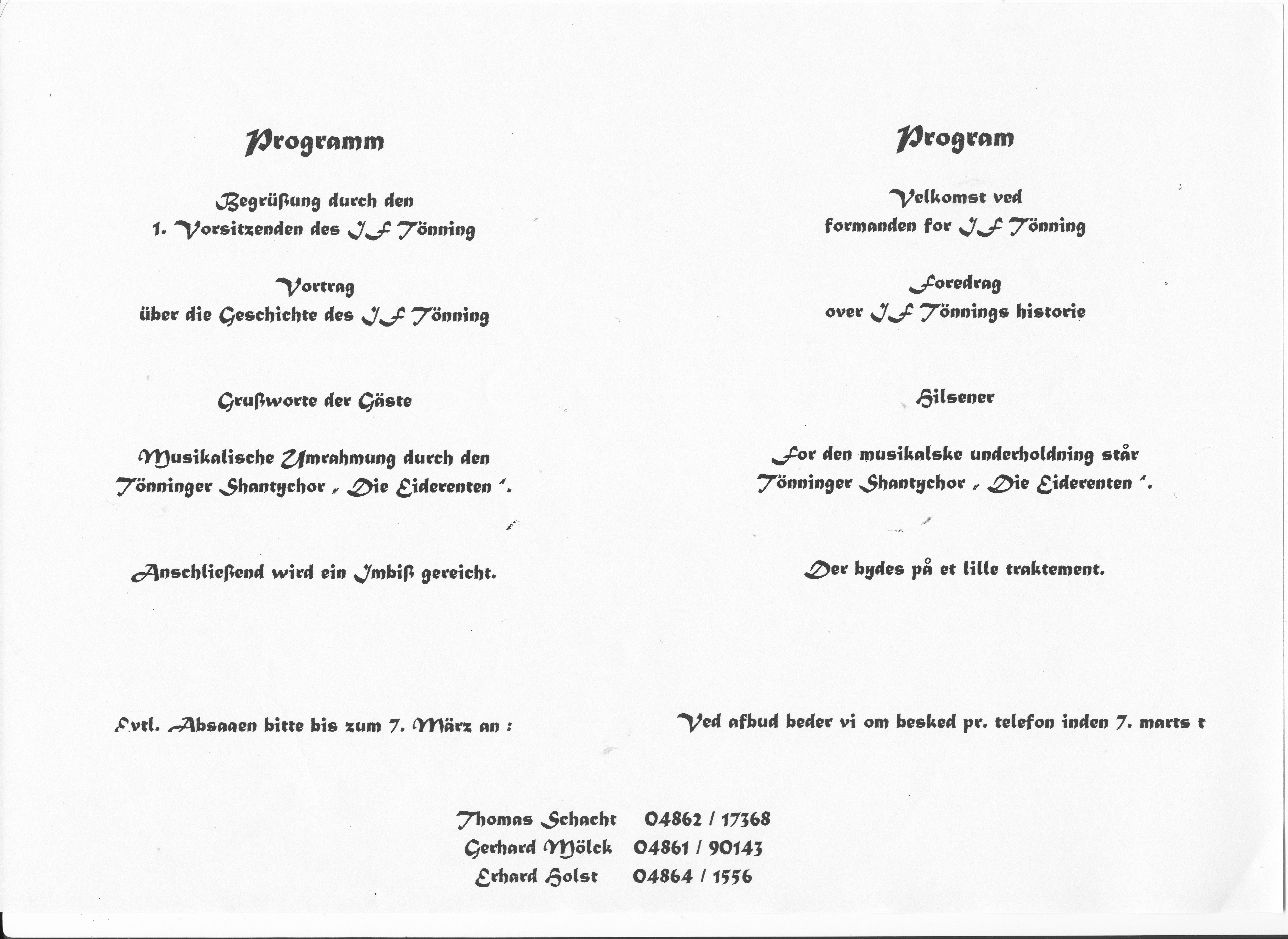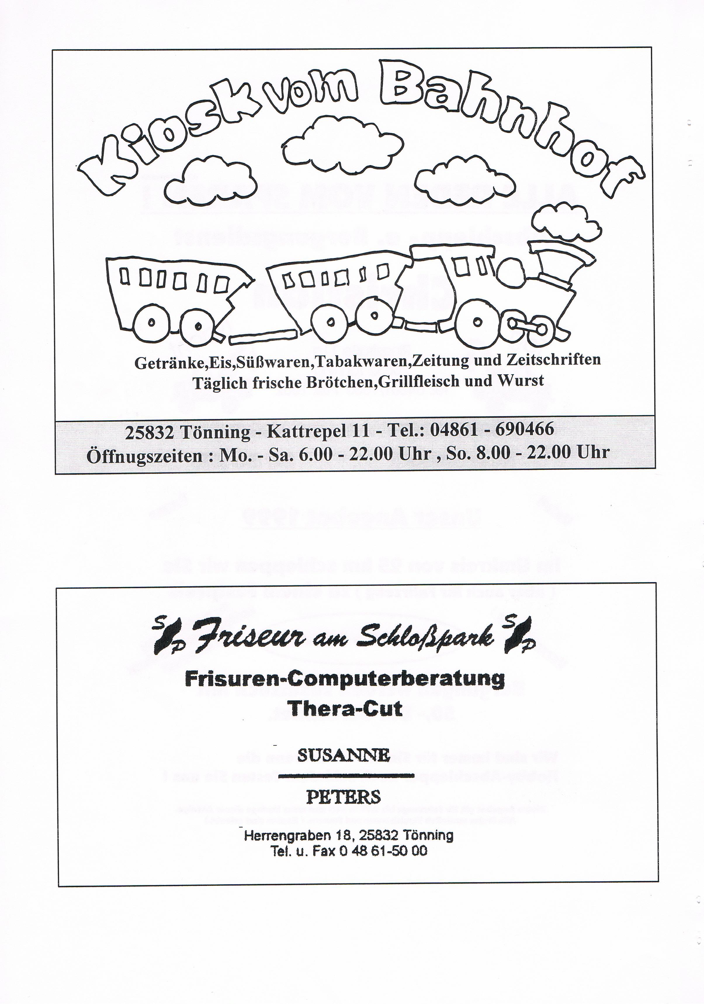 1. Ergänzung in diesem Jahrzehnt vom 09.03.2011: Bildmaterial vom Zeltfest anlässlich unserer 50 Jahrfeier wurde uns freundlicherweise von Sabine Möller aus Husum zur Verfügung gestellt.