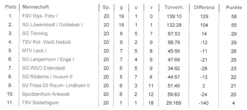 | 13.09.2008 | 18:00 | SG Tönning | FSV Wyk-Föhr | 0:2 | (0:1) | Fehlanzeige |