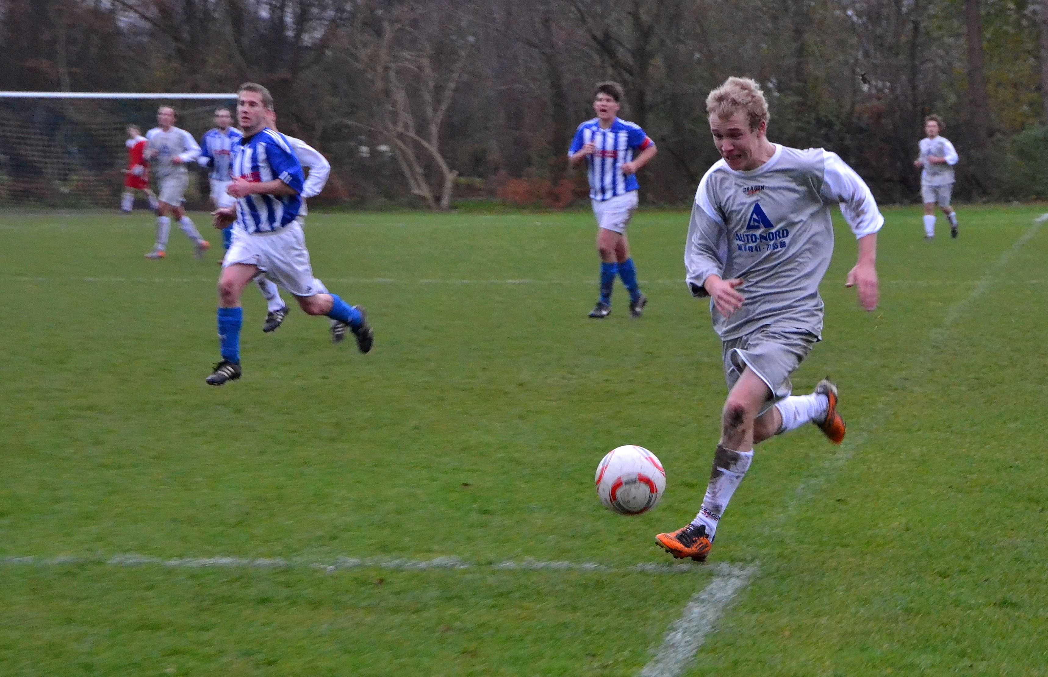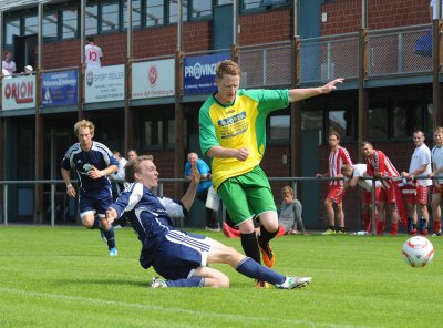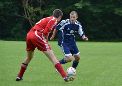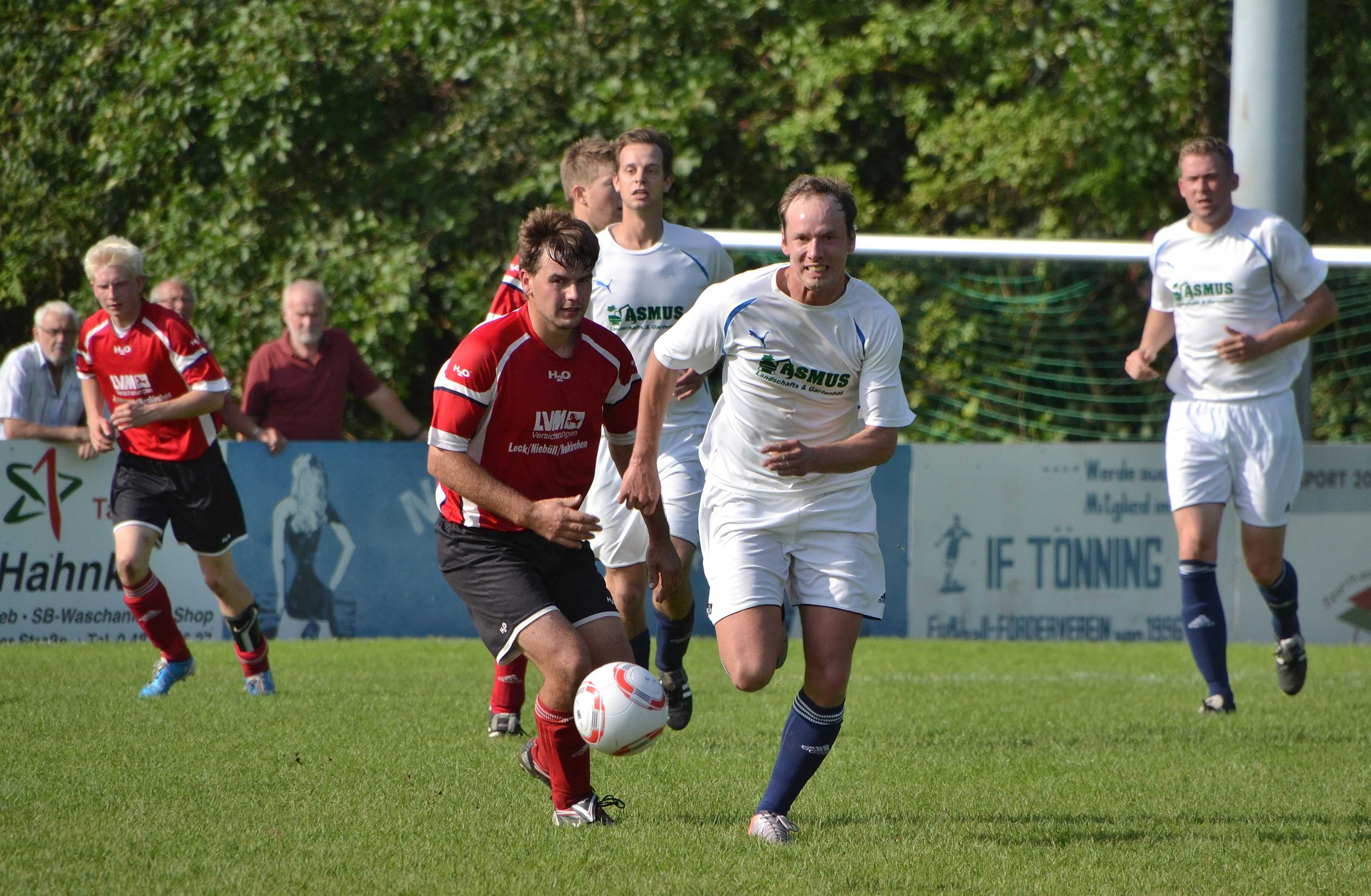 Sascha Clasen im Zweikampf mit Hajji Trotz der 0:5 Niederlage gegen den FC Haddeby 04, hat sich die I.Herren des IF Tönning wacker geschlagen!